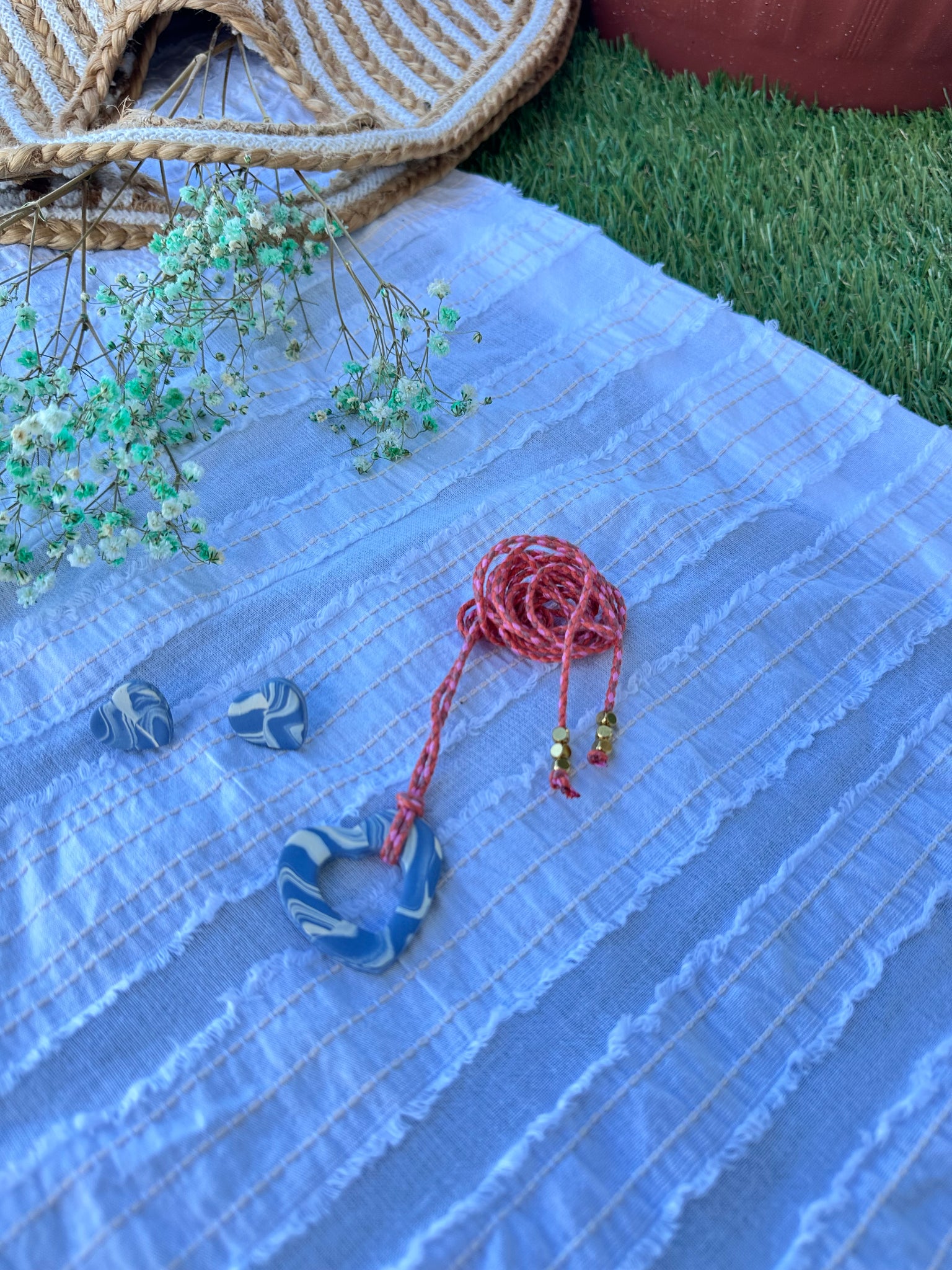 Si buscas elevar tu outfit este es un gran diseño. Original y versátil. Set de pantallas y choker de corazones con hilo en algodón color coral. Ideal no solo para Valentine también para la época de verano.
