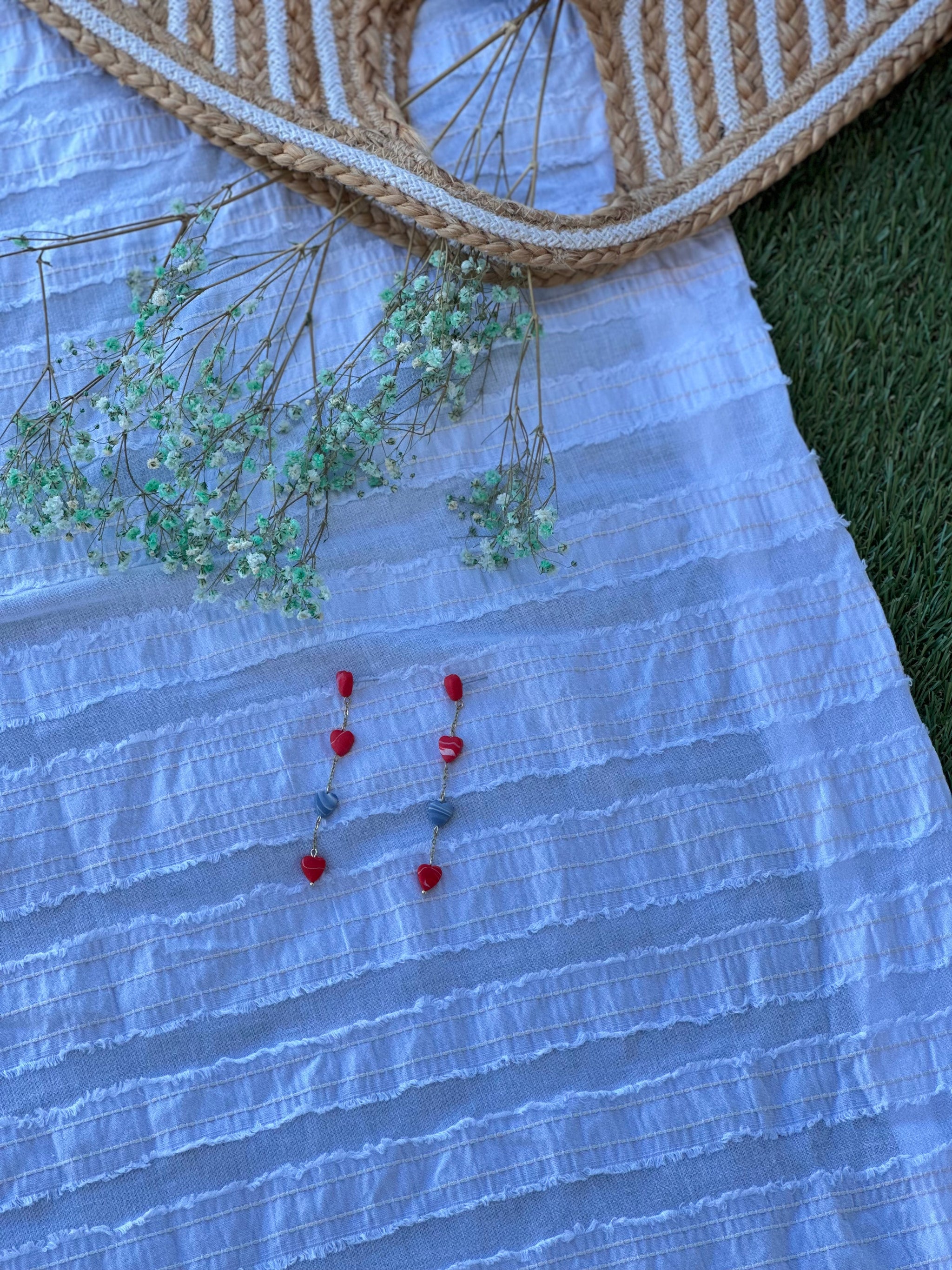 Pantallas de mini corazones super cute. Tienes dos opciones, asimétrica o ambas largas. Ideal para cualquier ocasión.